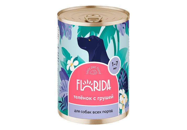 Florida Влажный корм Консервы Флорида для собак всех пород Телёнок с грушей (цена за упаковку) 400г х 9шт