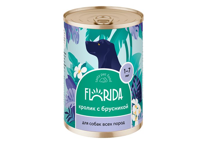 Florida Влажный корм Консервы Флорида для собак всех пород Кролик с брусникой (цена за упаковку) 240г х 12шт