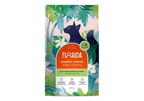 Florida Sterilized Adult Turkey & Cranberries Сухой корм Флорида для Стерилизованных кошек Индейка клюква 800 г