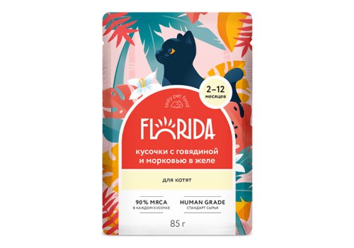 Florida Kitten Влажный корм Паучи Флорида для Котят Кусочки с Говядиной и морковью в желе (цена за упаковку) 85г х 12шт