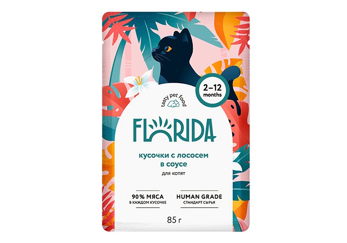Florida Kitten Влажный корм Паучи Флорида для Котят Кусочки с Лососем в соусе (цена за упаковку) 85г х 12шт
