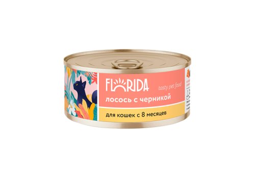 Florida Влажный корм Консервы Флорида для кошек Лосось с черникой (цена за упаковку) 100г х 24шт