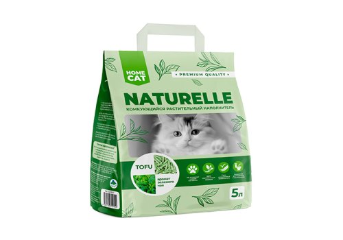 Homecat Naturelle Tofu Комкующийся растительный наполнитель Хоумкэт для кошачьего туалета Зеленый чай 5 л