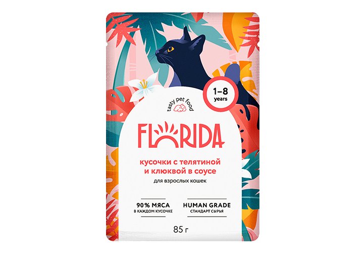Florida Влажный корм Паучи Флорида для кошек Кусочки с Телятиной и клюквой в соусе (цена за упаковку) 85г х 12шт