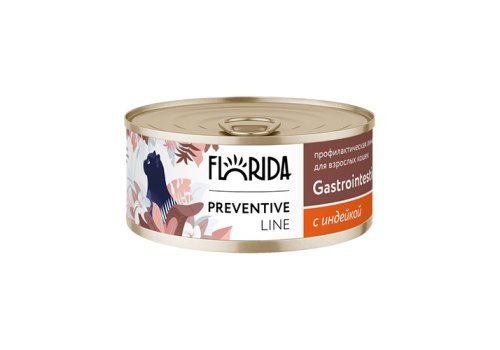 Florida Preventive Line Gastrointestinal Влажный корм Консервы Флорида для кошек при Расстройствах Пищеварения с Индейкой (цена за упаковку) 100г х 24шт