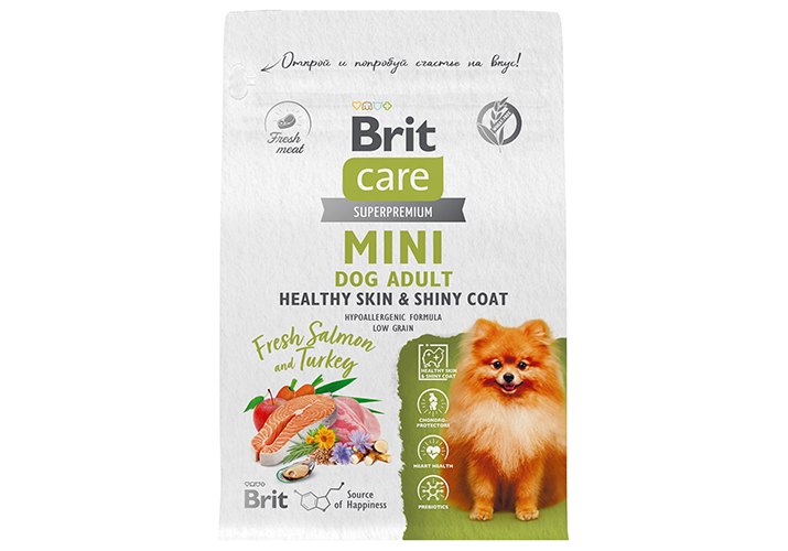 Brit Care Mini Adult Healthy Skin & Shiny Coat Сухой корм Брит для взрослых собак Мелких пород для Здоровой Кожи и Шерсти Лосось индейка 400 г