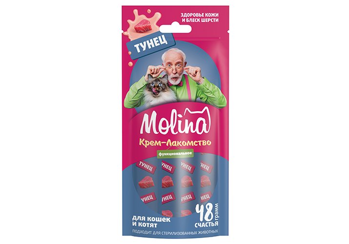 Molina Функциональное Крем-лакомство Молина для кошек и Котят Здоровье кожи и Блеск шерсти Тунец 48 г