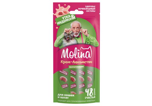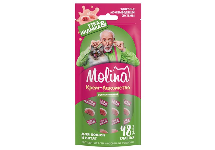 Molina Функциональное Крем-лакомство Молина для кошек и Котят Здоровье мочевыводящей системы Утка & Индейка 48 г