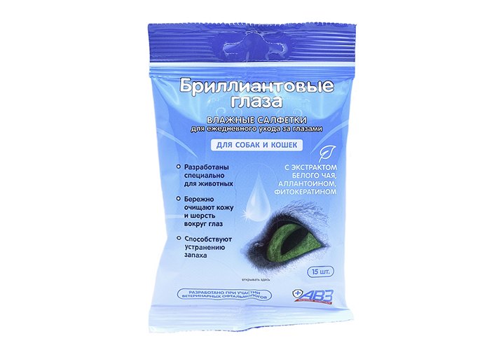 Бриллиантовые глаза Влажные салфетки для собак и кошек 15 шт