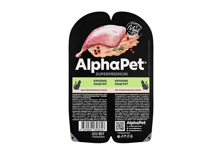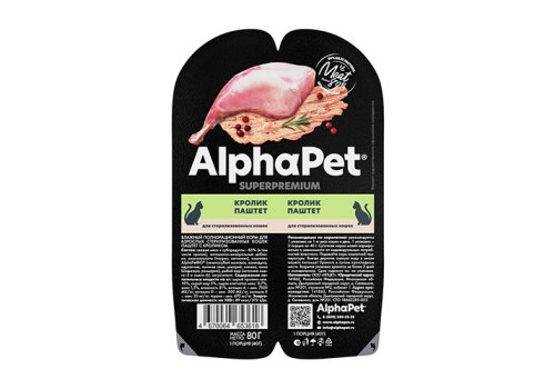 AlphaPet Superpremium Влажный корм Ламистеры АльфаПет Паштет для Стерилизованных кошек Кролик (цена за упаковку) 80г х 15шт