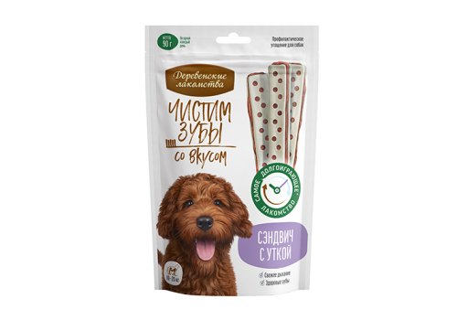 Деревенские лакомства Чистим зубы Лакомство для собак Сэндвич с Уткой 90 г