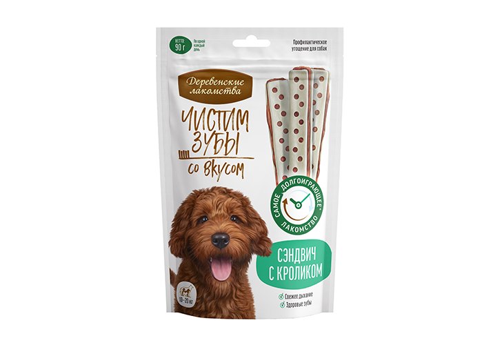 Деревенские лакомства Чистим зубы Лакомство для собак Сэндвич с Кроликом 90 г