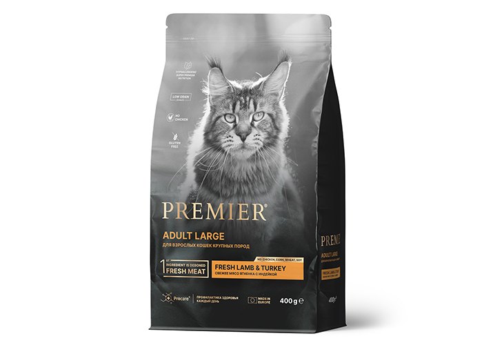 Premier Adult Large Fresh Lamb & Turkey Сухой корм Премьер для взрослых кошек Крупных пород Свежее мясо Ягненка с индейкой 400 г
