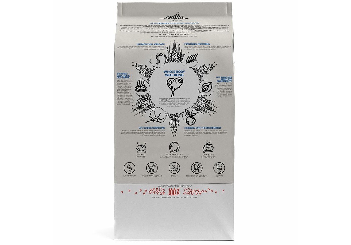 Craftia — корма класса ультрапремиум, созданные с заботой о питомцах и окружающей среде. Тщательно подобранные ингредиенты, уникальные рецептуры — в этих кормах есть все необходимое, чтобы питомцы и их владельцы ощутили гармонию жизни, здоровья и природы.