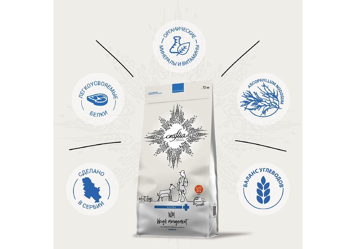 Craftia Galena Dog Weight Management Obesity Ветеринарный сухой корм Крафтия для собак при Избыточном весе 10 кг