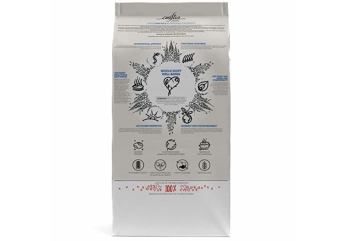 Craftia — корма класса ультрапремиум, созданные с заботой о питомцах и окружающей среде. Тщательно подобранные ингредиенты, уникальные рецептуры — в этих кормах есть все необходимое, чтобы питомцы и их владельцы ощутили гармонию жизни, здоровья и природы.
