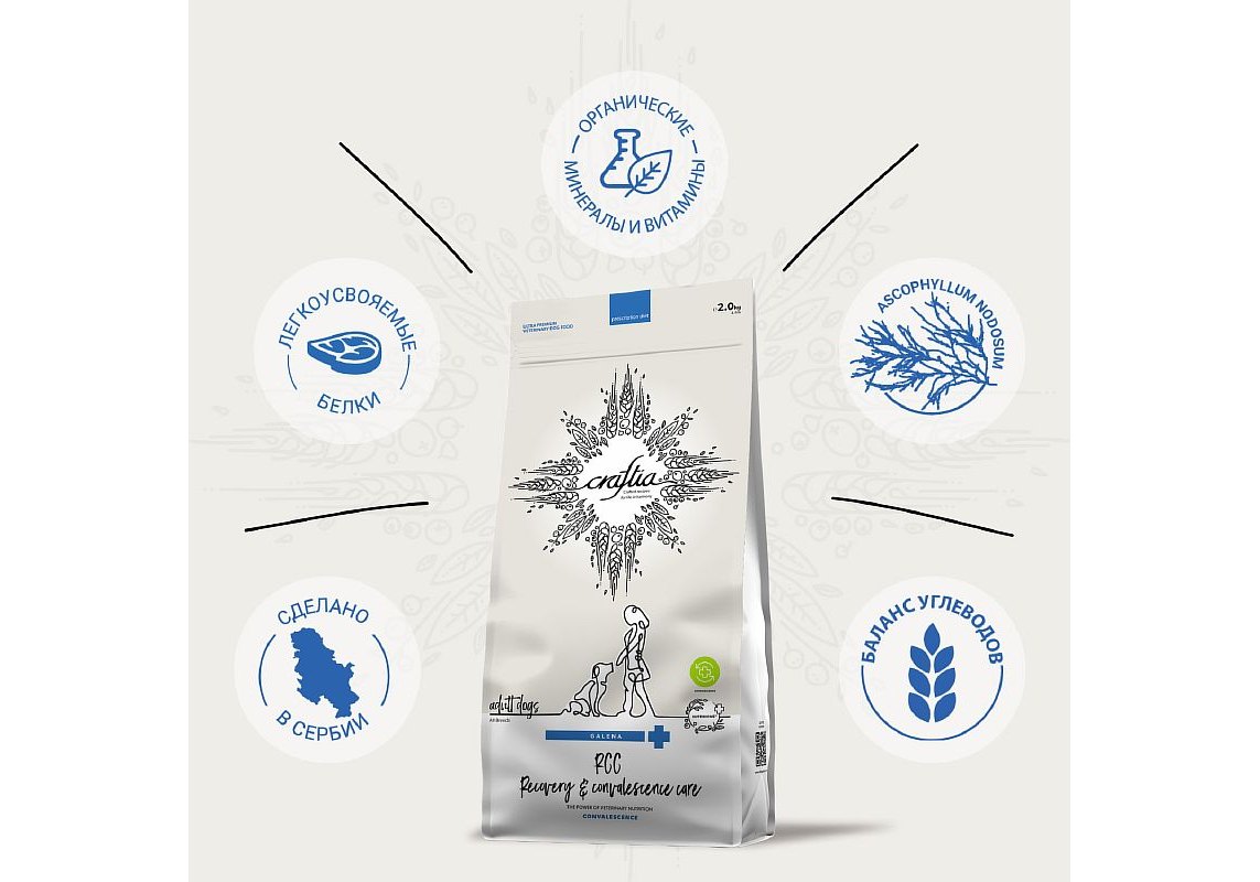 Craftia Galena Dog Recovery & Convalescence Care Ветеринарный сухой корм Крафтия для собак Поддержка в период Восстановления и Реабилитации 2 кг