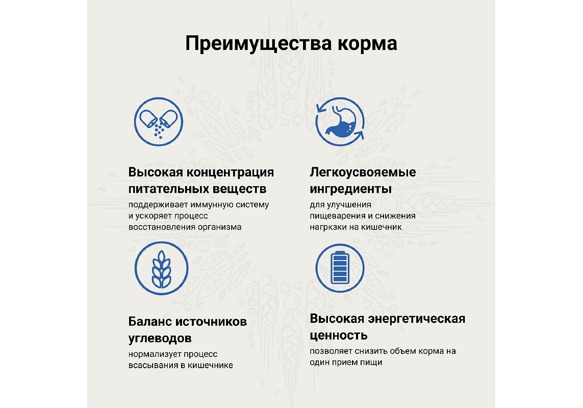 Это лучший источник белка из возможных, к тому же он обеспечивает вкусовую привлекательность корма. Обычно в составе несколько источников животного белка, что позволяет оптимизировать состав аминокислот, витаминов и минералов.