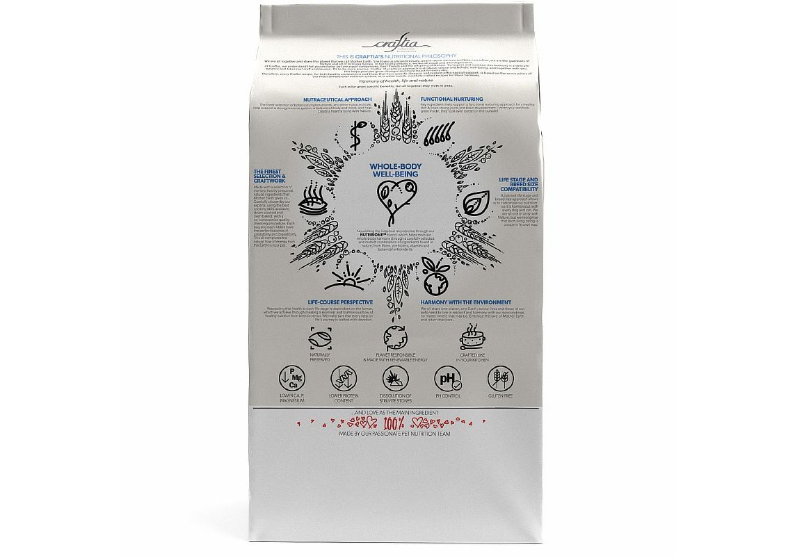 Craftia — корма класса ультрапремиум, созданные с заботой о питомцах и окружающей среде. Тщательно подобранные ингредиенты, уникальные рецептуры — в этих кормах есть все необходимое, чтобы питомцы и их владельцы ощутили гармонию жизни, здоровья и природы.