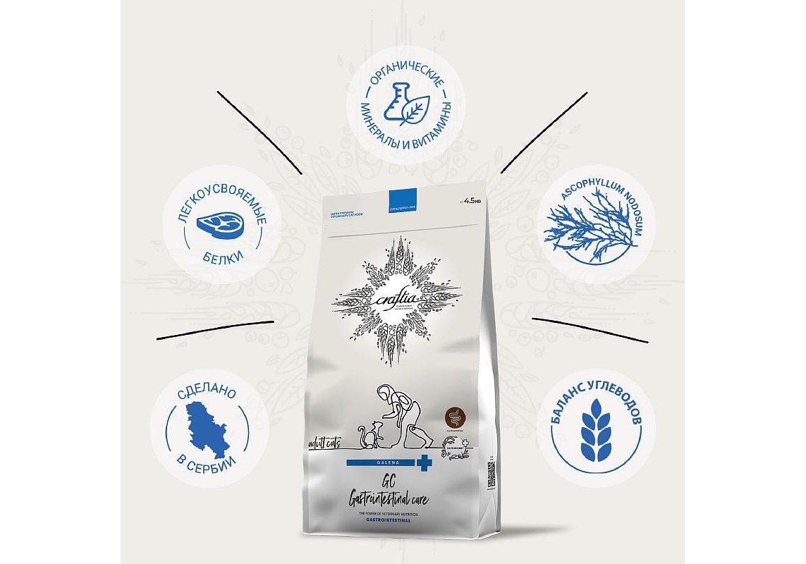 Craftia Galena Cat Gastrointestinal Care Ветеринарный сухой корм Крафтия для кошек при Заболеваниях ЖКТ 4,5 кг
