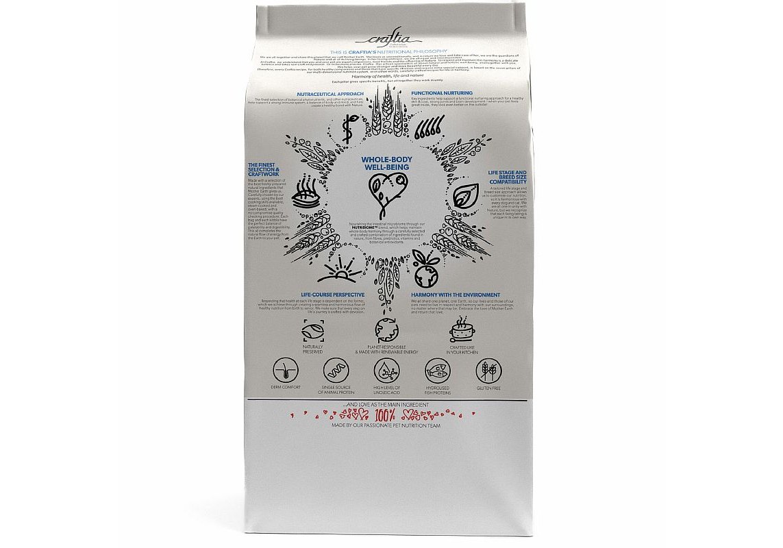 Craftia — корма класса ультрапремиум, созданные с заботой о питомцах и окружающей среде. Тщательно подобранные ингредиенты, уникальные рецептуры — в этих кормах есть все необходимое, чтобы питомцы и их владельцы ощутили гармонию жизни, здоровья и природы.