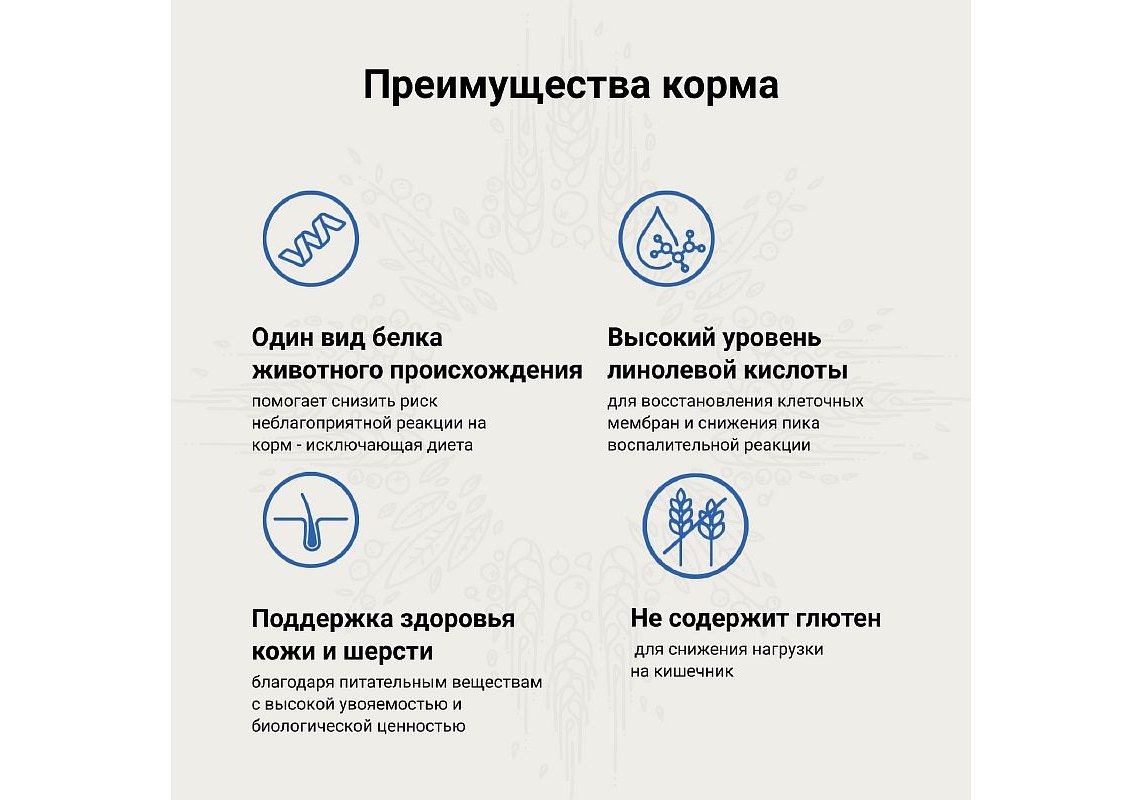 Это лучший источник белка из возможных, к тому же он обеспечивает вкусовую привлекательность корма. Обычно в составе несколько источников животного белка, что позволяет оптимизировать состав аминокислот, витаминов и минералов.