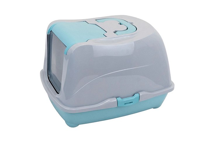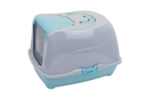 Homecat Туалет Хоумкэт для кошек Большой закрытый с дверцей бирюзово-серый 57 х 43 х 38 см