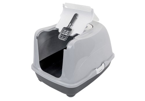 Homecat Туалет Хоумкэт для кошек Большой закрытый с дверцей светло-серый 57 х 43 х 38 см