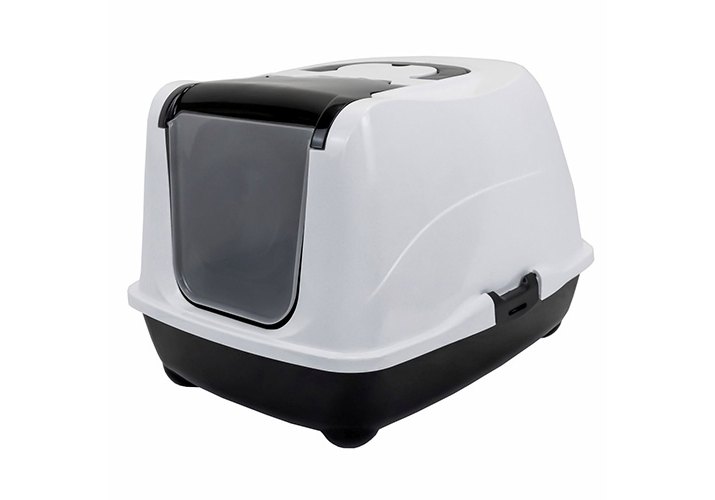 Homecat Туалет Хоумкэт для кошек Большой закрытый с дверцей черно-белый 57 х 43 х 38 см