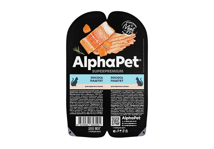 AlphaPet Superpremium Влажный корм Ламистеры АльфаПет Паштет для кошек Лосось (цена за упаковку) 80г х 15шт