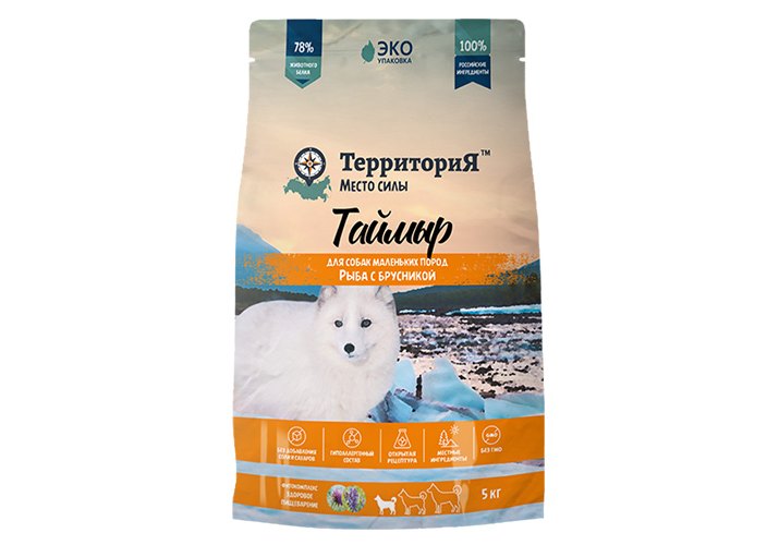 Территория Таймыр Сухой корм для взрослых собак Маленьких пород Рыба с брусникой 5 кг