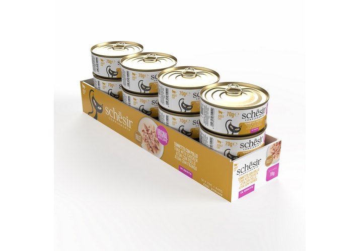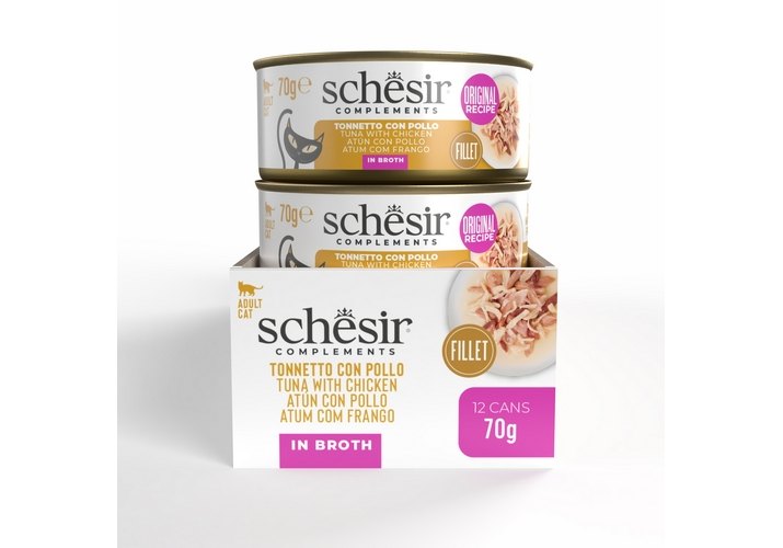 Schesir Tuna with Chicken Влажный корм Консервы Шезир для кошек Тунец курица (цена за упаковку) 70г х 14шт
