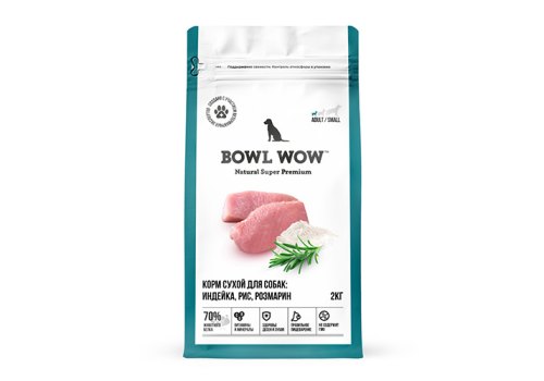 BOWL WOW Adult Small Сухой корм Боул Вау для взрослых собак Мелких пород Индейка рис розмарин 2 кг
