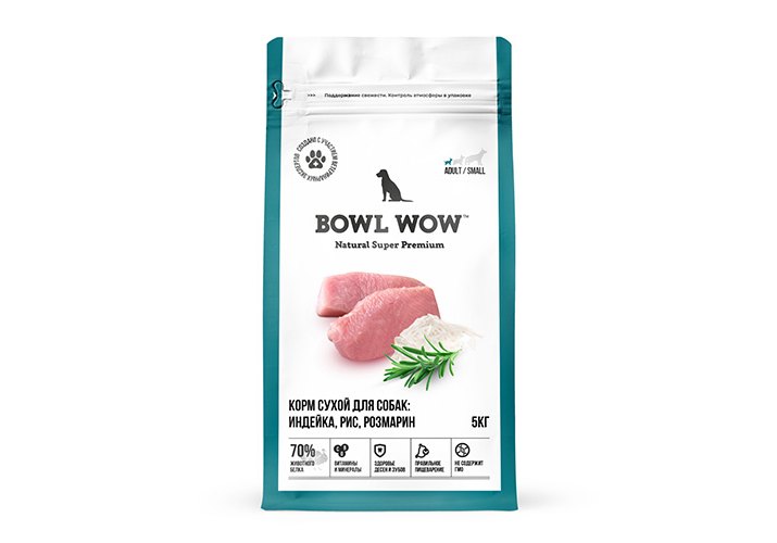 BOWL WOW Adult Small Сухой корм Боул Вау для взрослых собак Мелких пород Индейка рис розмарин 5 кг