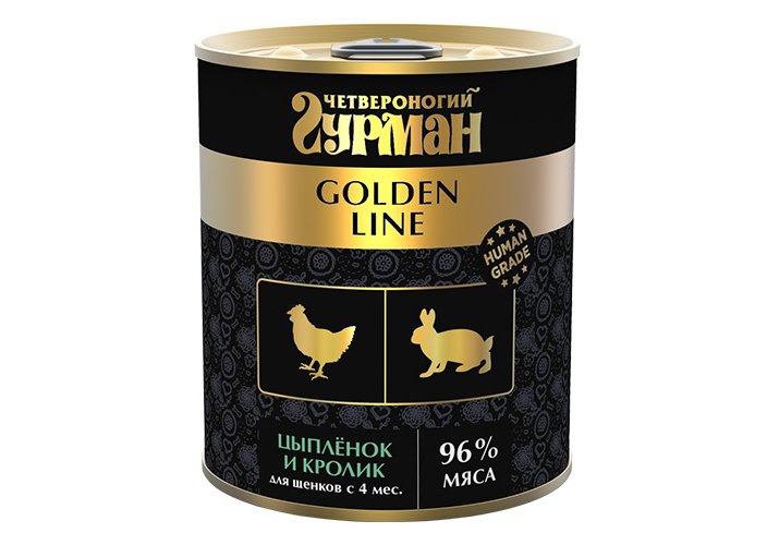Четвероногий Гурман Golden Line Консервы Золотая линия для Щенков Цыпленок и Кролик в желе (цена за упаковку) 340г х 12шт