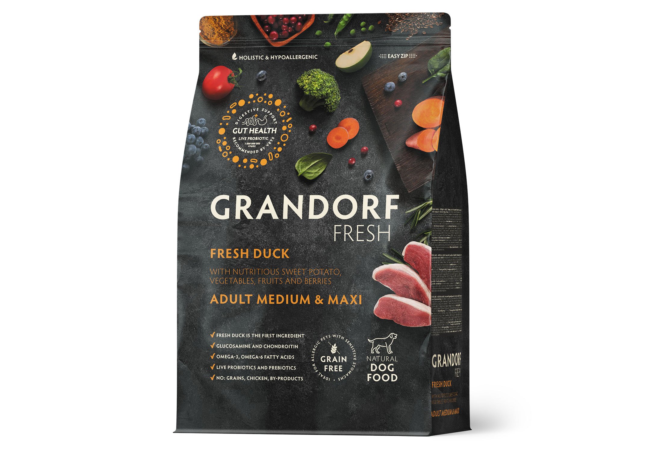 GRANDORF FRESH - беззерновой холистик корм с живыми пробиотиками для кошек и собак, созданный на основе свежего мяса, с овощами, фруктами и ягодами. Без зерна, глютена, субпродуктов и курицы.