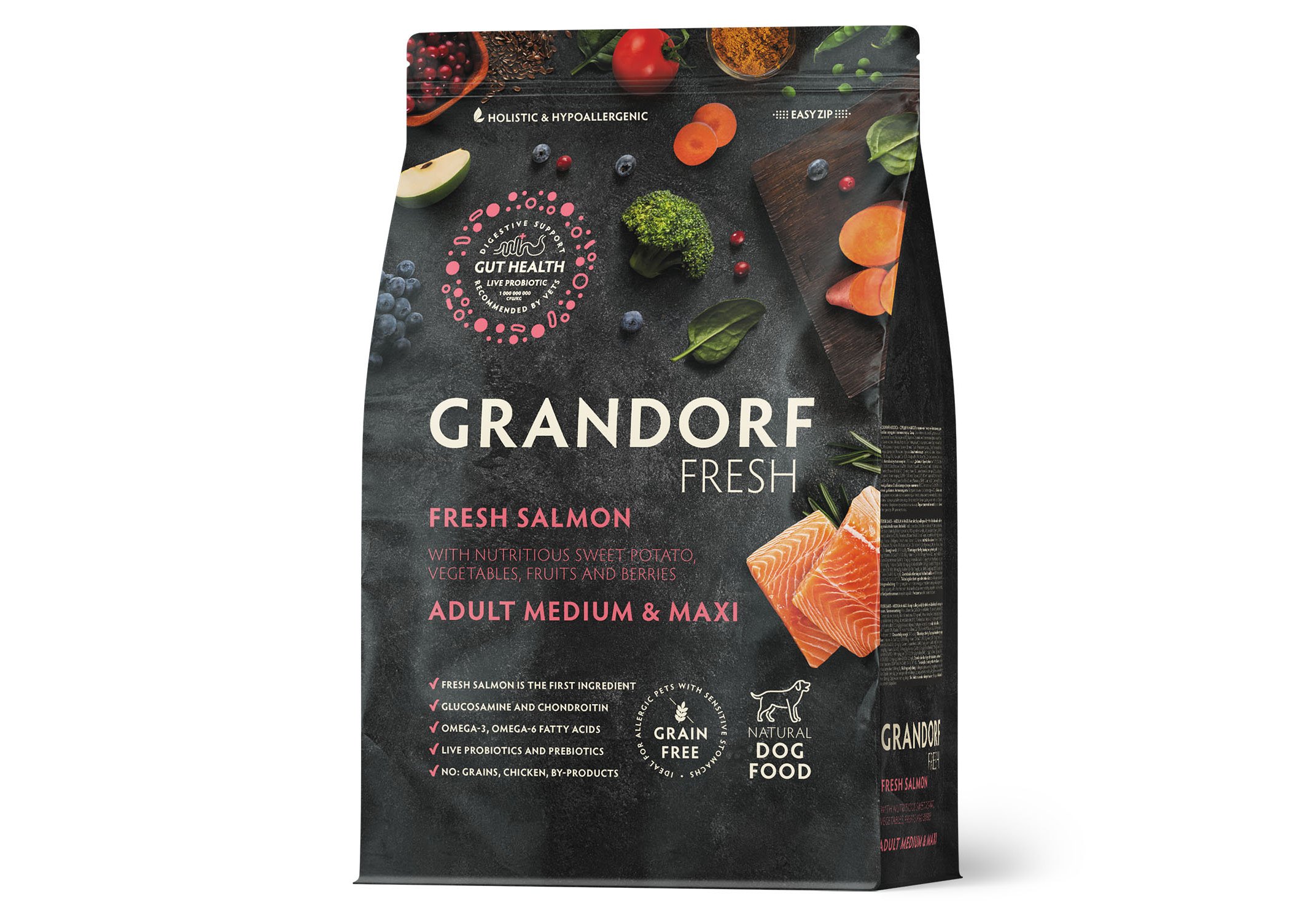 GRANDORF FRESH - беззерновой холистик корм с живыми пробиотиками для кошек и собак, созданный на основе свежего мяса, с овощами, фруктами и ягодами. Без зерна, глютена, субпродуктов и курицы.