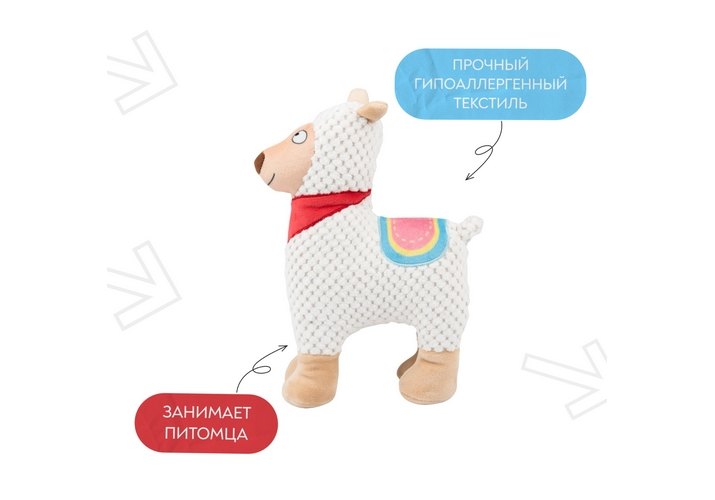 Mr.Kranch Игрушка Мистер Кранч для собак Лама плюшевая с пищалкой белая 20 см