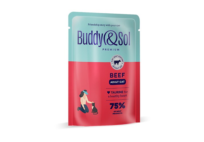 Buddy Sol Premium Adult Beef Влажный корм Паучи Бадди Сол для взрослых кошек Говядина (цена за упаковку) 85г х 14шт
