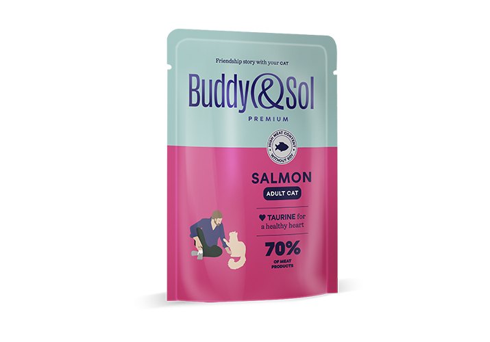 Buddy Sol Premium Adult Salmon Влажный корм Паучи Бадди Сол для взрослых кошек Лосось (цена за упаковку) 85г х 14шт