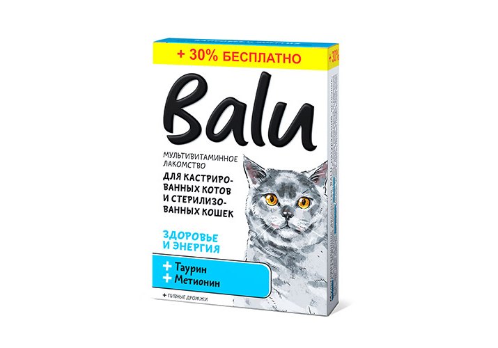 Balu Лакомство мультивитаминное Балу для кастрированных котов и стерилизованных кошек Здоровье и энергия таурин и метионин 130 таб