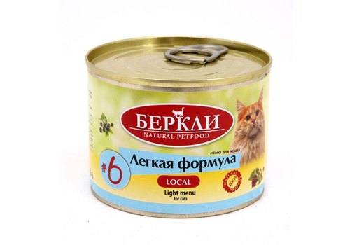 Berkley LOCAL №6 Light menu Влажный корм Консервы Беркли для кошек всех стадий жизни Легкая формула (цена за упаковку) 200г х 6шт