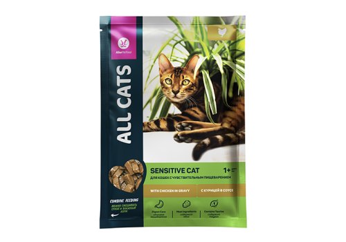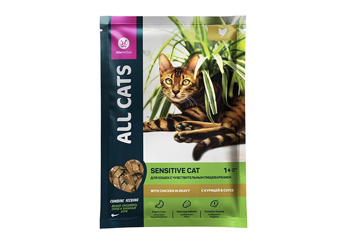 All Cats Sensitive Паучи Ол Кэтс для кошек с Чувствительным пищеварением Курица в соусе (цена за упаковку) 85г х 28шт