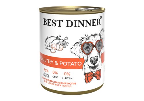 Best Dinner Poultry & Potato Консервы Бест Диннер для собак всех пород Птица с картофелем (цена за упаковку) 850г х 6шт