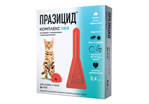 Apicenna ПРАЗИЦИД-КОМПЛЕКС НЕО капли на холку для кошек и котят менее 4 кг 1 пипетка по 0,4 мл