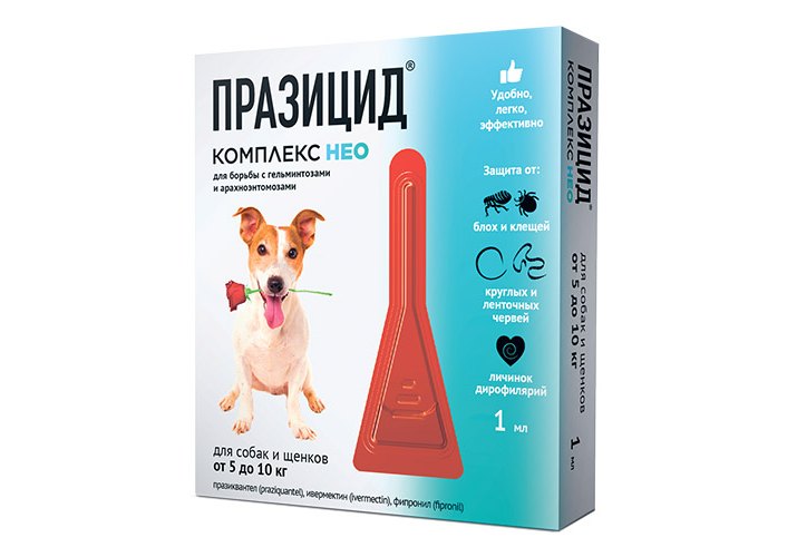Apicenna ПРАЗИЦИД-КОМПЛЕКС НЕО капли на холку для щенков и собак от 5 до 10 кг 1 пипетка по 1 мл