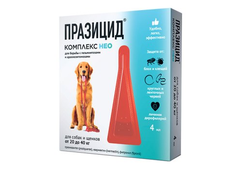 Apicenna ПРАЗИЦИД-КОМПЛЕКС НЕО капли на холку для щенков и собак от 20 до 40 кг 1 пипетка по 4 мл