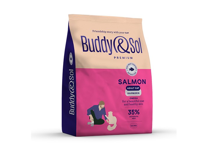 Buddy Sol Premium Adult Hair & Skin Chicken Salmon Сухой корм Бадди Сол Премиум для кошек для здоровья Кожи и Шерсти Курица лосось 400 г