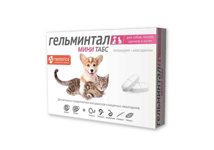 Гельминтал Мини Табс для Щенков Котят собак и кошек 10 таб