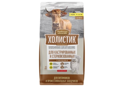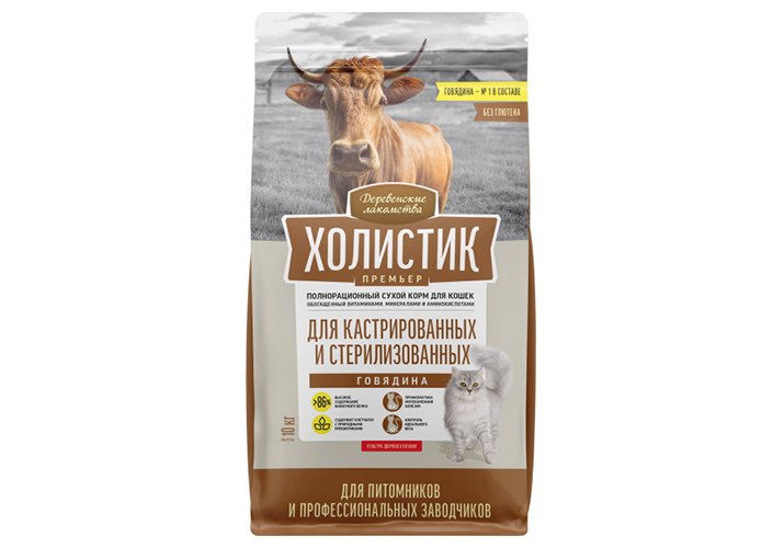 Деревенские лакомства Холистик Премьер Сухой корм для Кастрированных и Стерилизованных кошек Говядина 10 кг